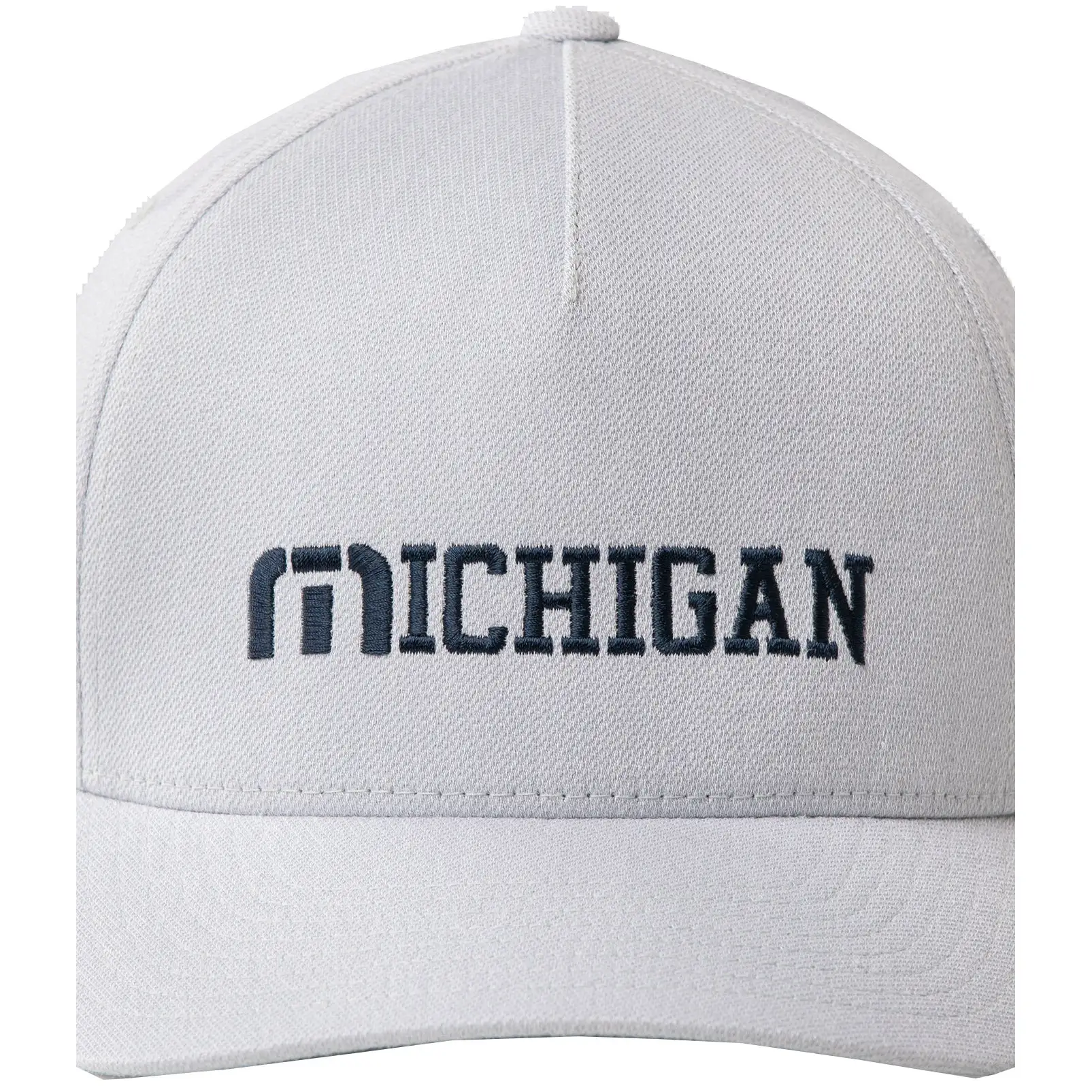 The TravisMathew logo meets its match with the Fryday Hat. The TM logo is camouflaged into the Michigan wordmark as a nod to the highly popular Michigan hunting scene.