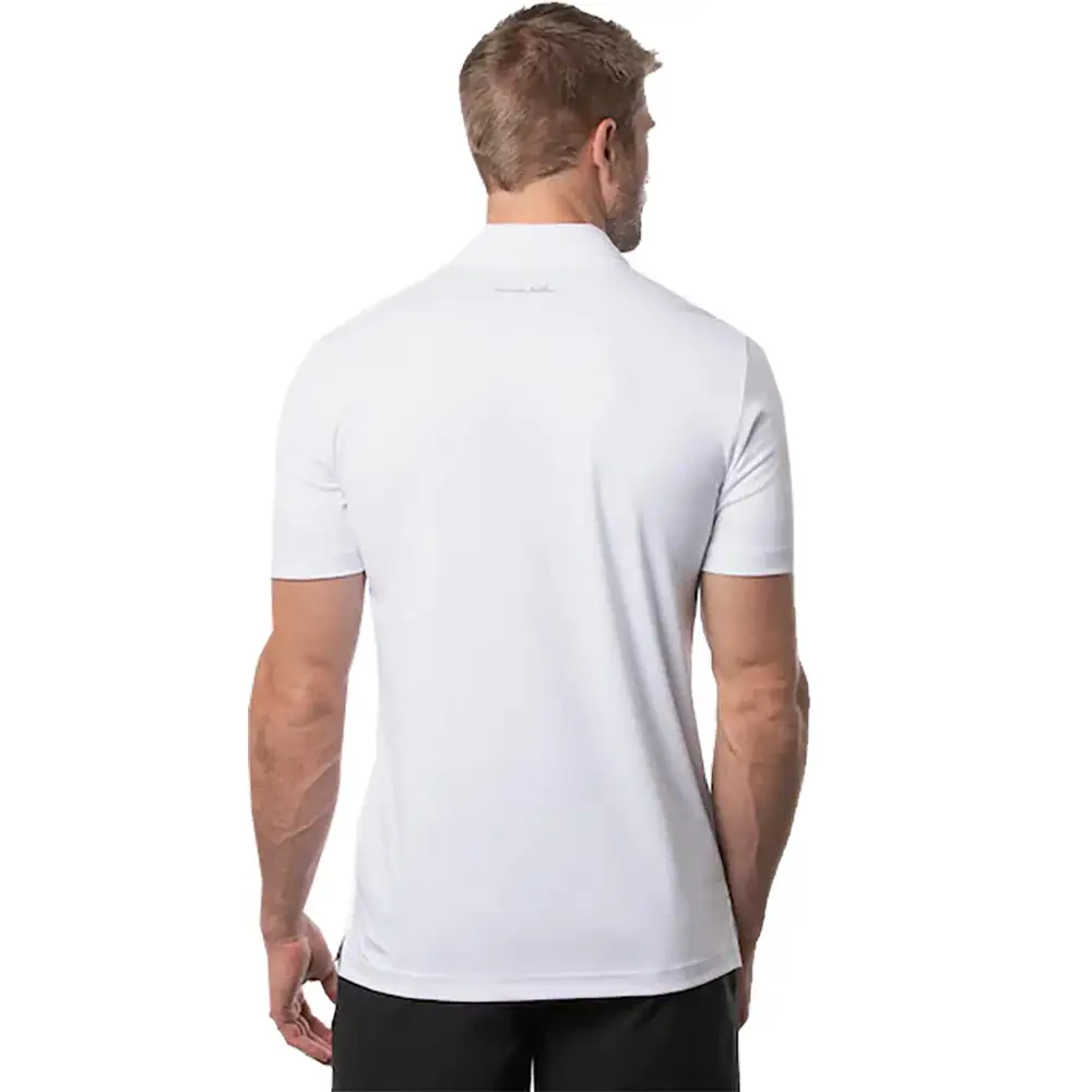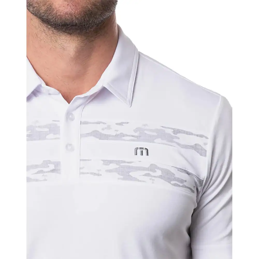 Add some simple styling to your golf wardrobe with the TravisMathew Sockeye Golf Polo. The Sockeye is built with a cotton/polyester/spandex blend with an enhanced four-way stretch that provides supreme comfort throughout the golf swing. There are built-in collar stays that ensure the collar maintains the perfect shape for a stylish look. The cut and sew chest stripe with tonal camo print and printed logo on the back yoke that will have you looking good on and off the golf course.