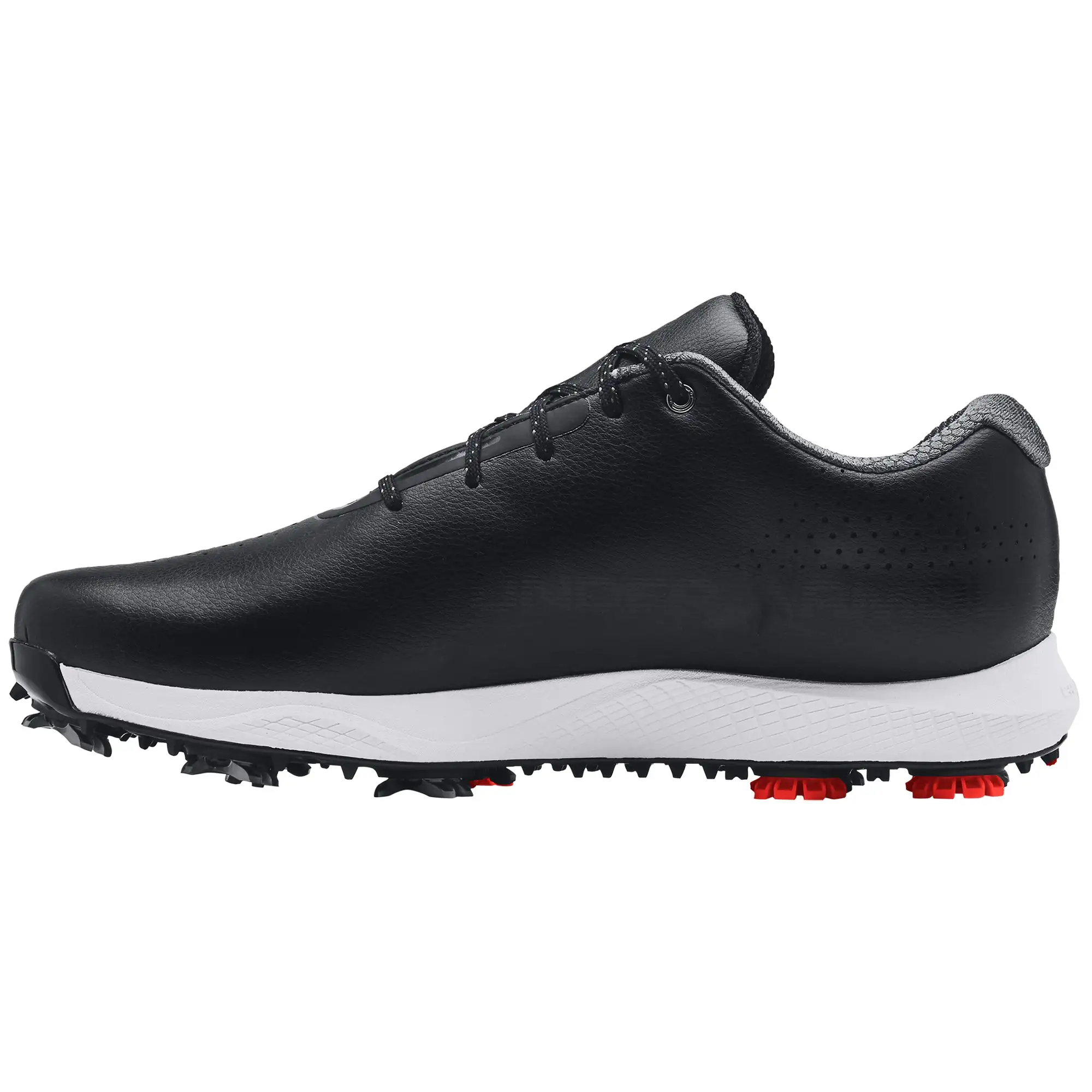 Stay comfortable and focused with the Under Armour Charged Draw RST Golf Shoes. The Charged shoes feature a breathable and durable microfiber leather upper that also has the Never Wet treatment that will keep your feet cool and dry throughout the entire round. There is an anti-microbial Ortholite sockliner that provides tons of underfoot comfort and breathability and the Charged cushioning midsole utilizes compression molded foam for response and durability. The lower profile UA Rotational Resistance RST 2.0 spikes will provide traction on all types of surfaces while also providing added comfort.