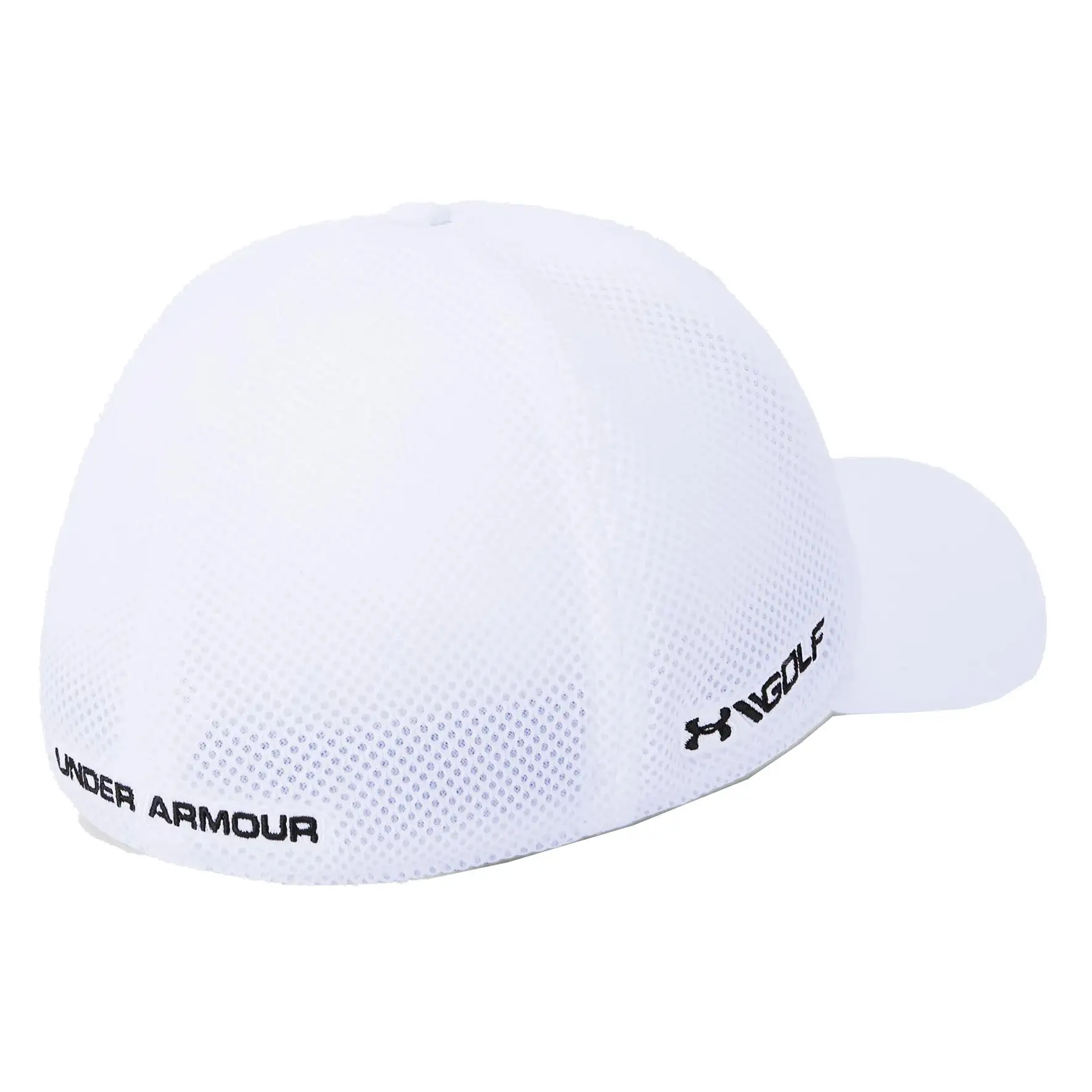 Top off your golf ensemble with the Under Armour Microthread Mesh Golf Hat. This hat comes in the UA Classic fit that has a pre-curved visor and structured front panels and a low profile fit. The UA Microthread fabric will dry faster and provides superior stretch while not absorbing sweat to keep you dry and comfortable during your round. The stretch construction of this hat adds to the comfort and the embroidered UA logo adds a touch of style.