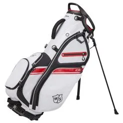 Perfect for golfers that like to walk comes the lightweight Wilson Exo Golf Stand Bag. This golf bag is loaded with tons of great features such as the five way top with adjustable 3D foam straps that make it comfortable to tote this bag around the course. There are tons of pockets that come in handy for storing balls, clothing and anything else you need for your round of golf and the fully integrated stand keeps the bag up while you take your shot.