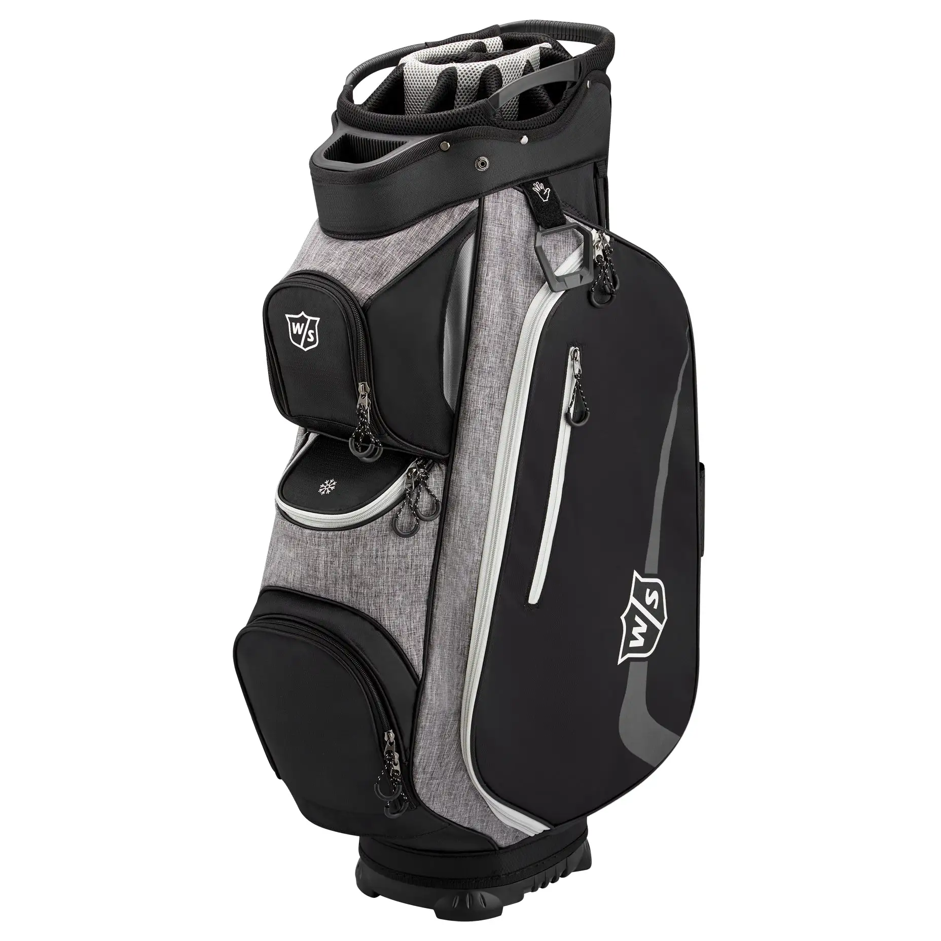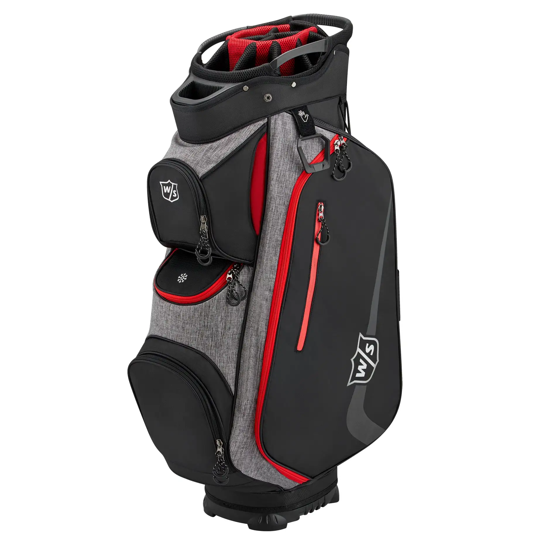 Built for golfers that want easy mobility and great organization comes the Wilson Staff Xtra Golf Cart Bag. The Xtra cart bag features a 14-way top with four full length dividers and an external putter well so you can organize the clubs to your desires. There are two full length garment pockets and rangefinder pocket that are great for storing golf essentials, and the large cooler pocket allows you to keep your favorite beverage cool. The trolley anchor base and cart strap loop will have the bag fitting perfectly onto a golf cart and the padded strap makes it comfortable to carry from the car to the clubhouse and back.